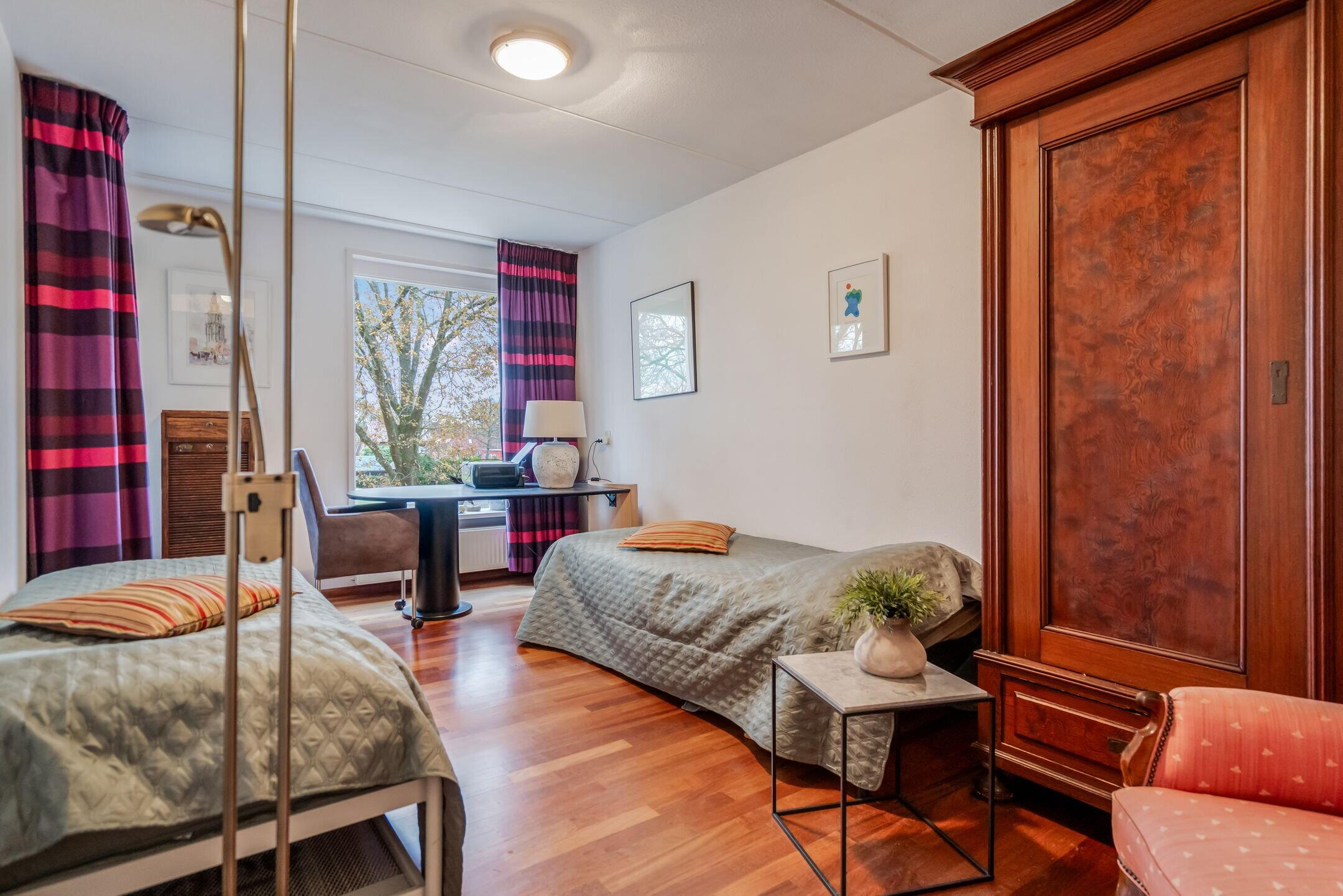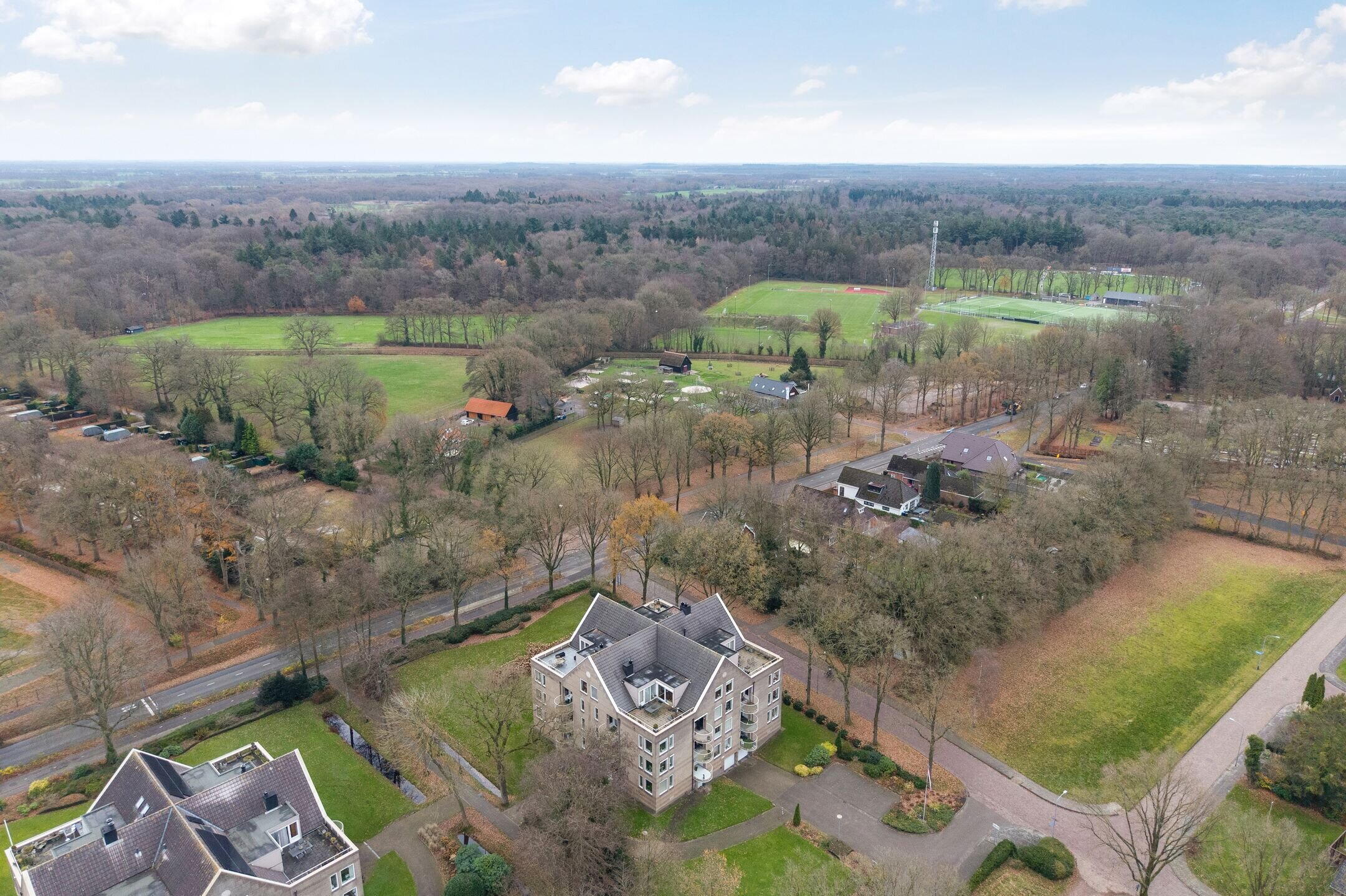 Dit ruime appartement is uniek gelegen aan de rand van het mooie centrum van Roden, met vrij uitzicht over het landgoed Mensinge. Het maakt deel uit van het statige appartementencomplex “De Roderborg”.